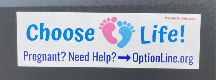 Each bumper sticker shares a positive message, encouraging women to “Choose Life!” and promoting OptionLine.org for pregnancy help. OptionLine is run by Heartbeat International, which offers 24/7 counseling (English and Spanish) and an interactive map that helps women find pregnancy resources in their area.
