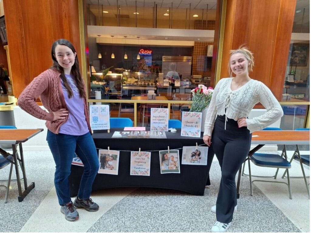 My next idea was to call around to different florists asking for flower donations to help sell on CNU’s campus to raise money for Care Net. One gentleman reached out, saying he’d initially donate 50 carnations to us and continue to donate however many additional flowers were needed. Throughout our three-day flower fundraiser, we sold just under 200 carnations and raised approximately $400. Though this flower fundraiser was terrific, it was not where the blessings stopped for our group.