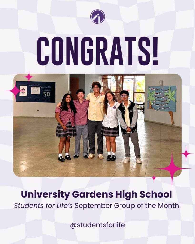 Our first Pro-Life Generation (PLG) high school group at University Gardens High School in Rio Piedras, Puerto Rico, is now Students for Life of America’s (SFLA) September Group of the Month!